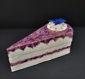 2022Klein Taartdoosje voor zoete herinneringen. Dit doosje is gemaakt van witbakkende chamotte klei. Het is later bewerkt met een effektglazuur. Op de bodem zit een laagje vilt om je voorwerpen te beschermen.